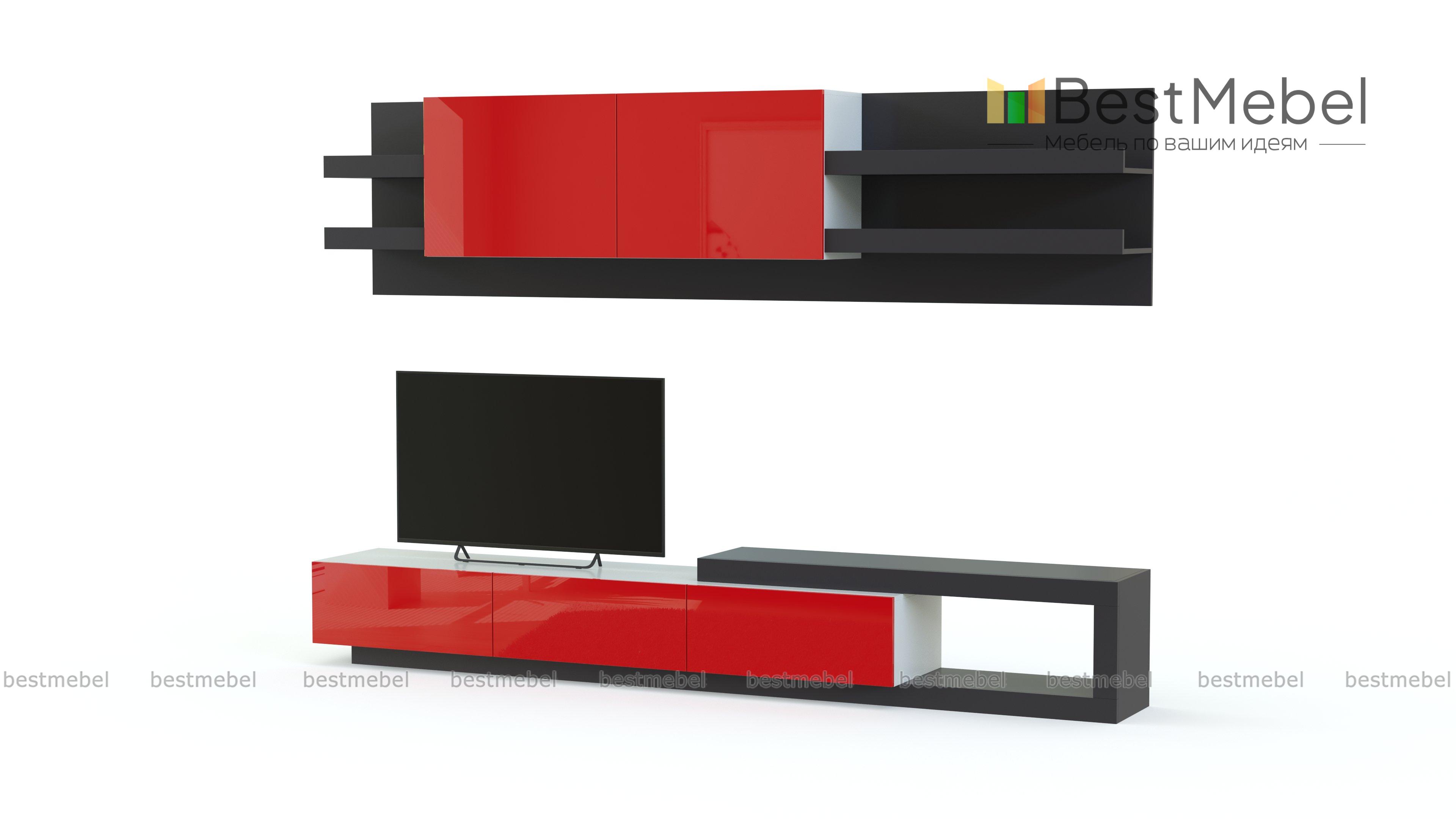 Гостиная МДФ глянец BMS станет отличным выбором для тех, кто хотел бы дополнить интерьер ярким акцентом. Уместная и в просторном, и в небольшом помещении, модульная система выполнена в сочетании эффектного и износостойкого цветного глянца и насыщенных древесных тонов. В комплект входят широкая низкая тумба под ТВ с глухими секциями и надстройкой с нишей и навесная панель с открытыми книжными полками и распашным шкафом. Купить гостиную МДФ глянец BMS для уютного функционального пространства приглашаем в наш интернет-магазин.