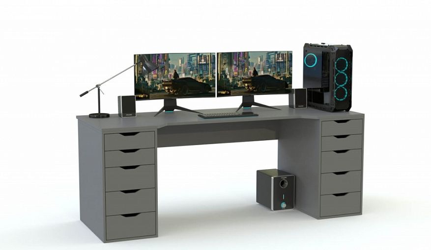 Этот игровой стол - просто бомба! Места достаточно для двух мониторов и всех моих гаджетов. Добавил встроенную подсветку для атмосферы. Крепкий качественный стол, рекомендую всем геймерам.