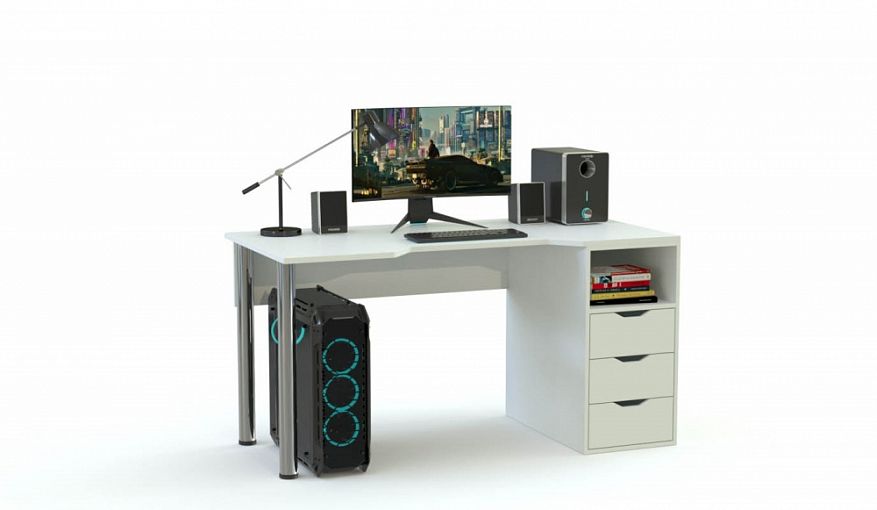 Игровой стол Ромео-6 BMS органично вписывается в современный минималистичный интерьер и подходит для игры, учебы или работы. Модель оборудована эргономично вырезанной столешницей для комфортного положения во время игры и тумбой с тремя выдвижными ящиками и нишей для хранения под рукой рабочих материалов. Выполненный в белом цвете, стол выглядит легким, а устойчивость конструкции придают хромированные опоры с регулировкой высоты. Купить игровой стол Ромео-6 BMS приглашаем к нам в интернет-магазин.