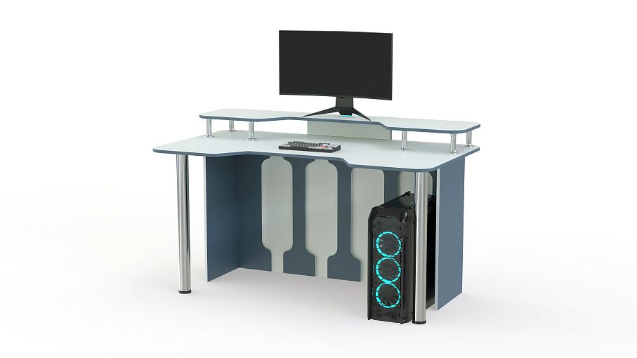 Игровой стол Стар-5 BMS позволит проводить за компьютером долгое время благодаря удобной форме столешницы. Дополненная надстройкой, она поможет разместить на удобной высоте монитор и периферийные устройства, а правильное положение тела обеспечит эргономичная выемка. Яркая модель в сине-белой гамме оборудована устойчивыми хромированными опорами и задней стенкой с декоративными вырезами. Купить игровой стол Стар-5 BMS вы сможете на сайте нашего интернет-магазина.