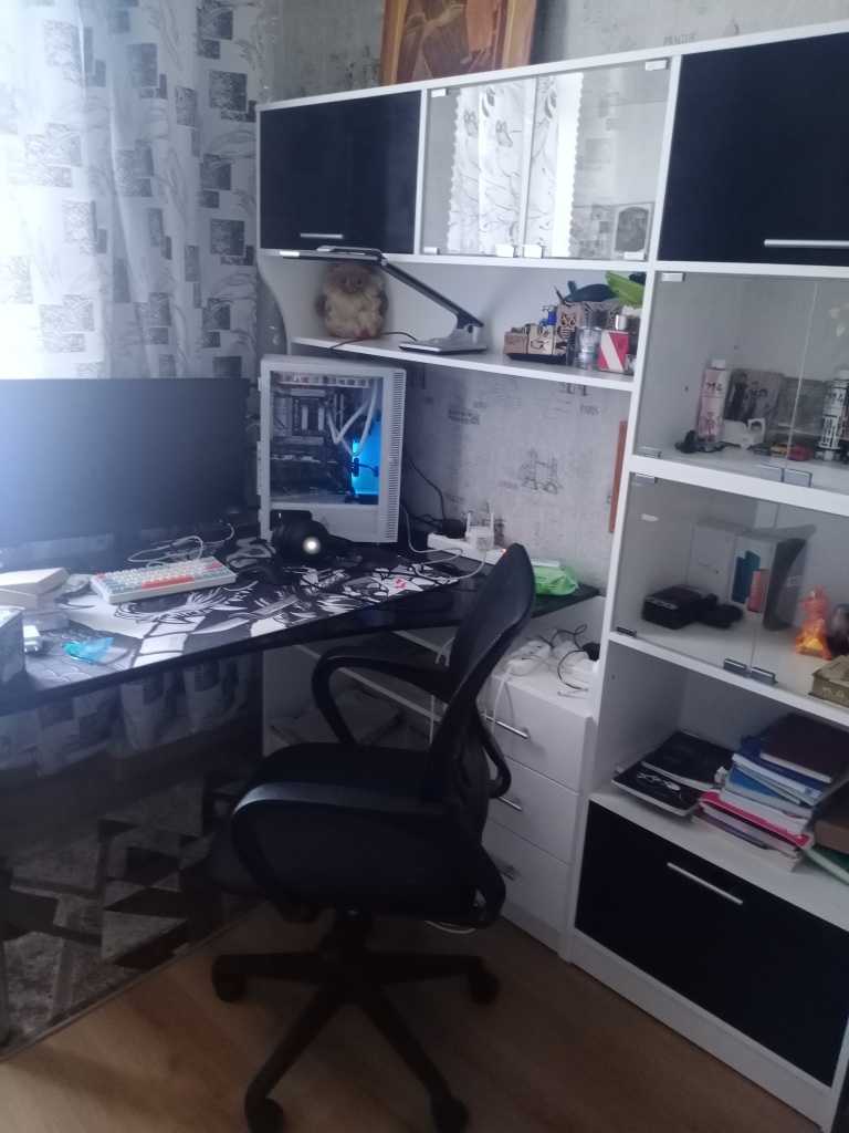 Неплохой стол, хорошо вписался в угол. Длина столешницы 1460, секции со шкафами - 1600. Не довезли ручки, поэтому фото без них) Решили не ставить пока две стеклодвери и оставить просто полки под учебники. У ДСП, конечно, качество соответствующее, хлипковато, но МДФ не по бюджету. Оценку снизила за отсутствующие заказанные ручки и за отсутствие в комплекте ограничителя для стеклянной двери - при закрывании дверь "проваливалась внутрь шкафа, подправили сами.