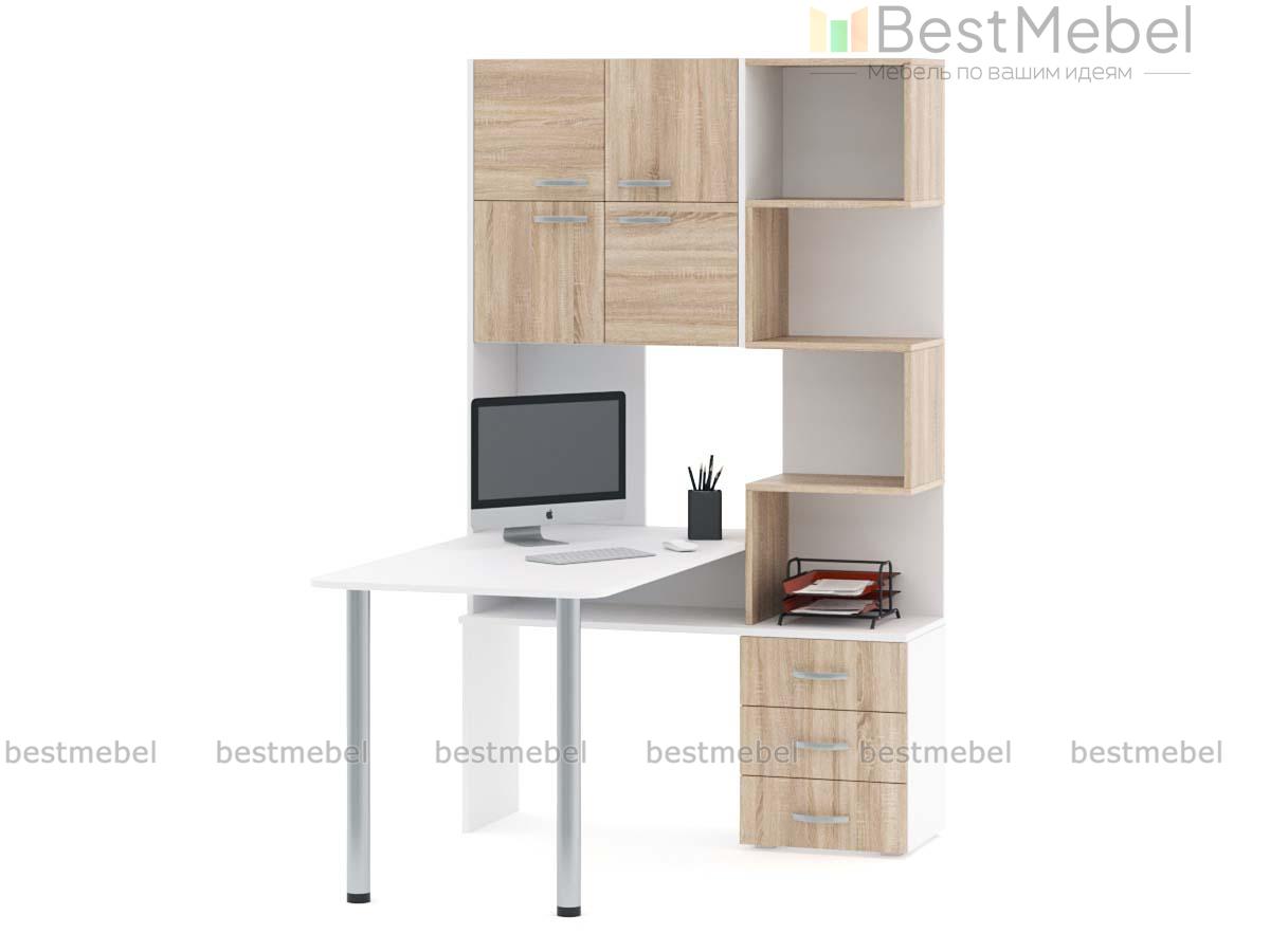 Необычный дизайн и функциональность компьютерного стола Лорел 5 BMS сразу привлекают внимание. Угловая конструкция практична и по максимуму использует свободное пространство. Эргономичная столешница на металлических опорах скомбинирована с вместительным высоким стеллажом. В выдвижных ящиках тумбы удобно разместятся канцелярские принадлежности и прочие мелочи. Расположенные змейкой, контрастные открытые полки удобны для книг и интерьерных украшений.