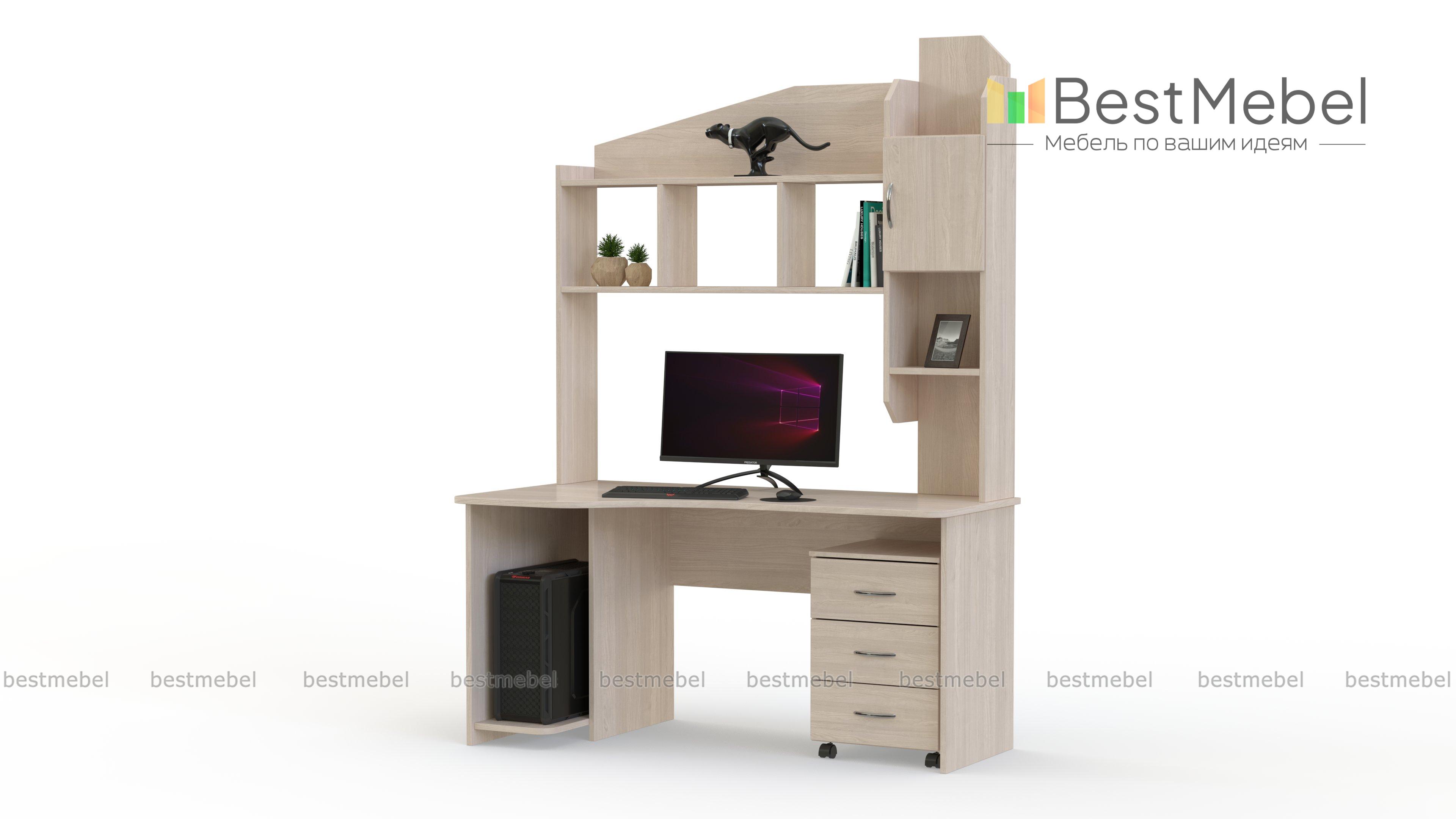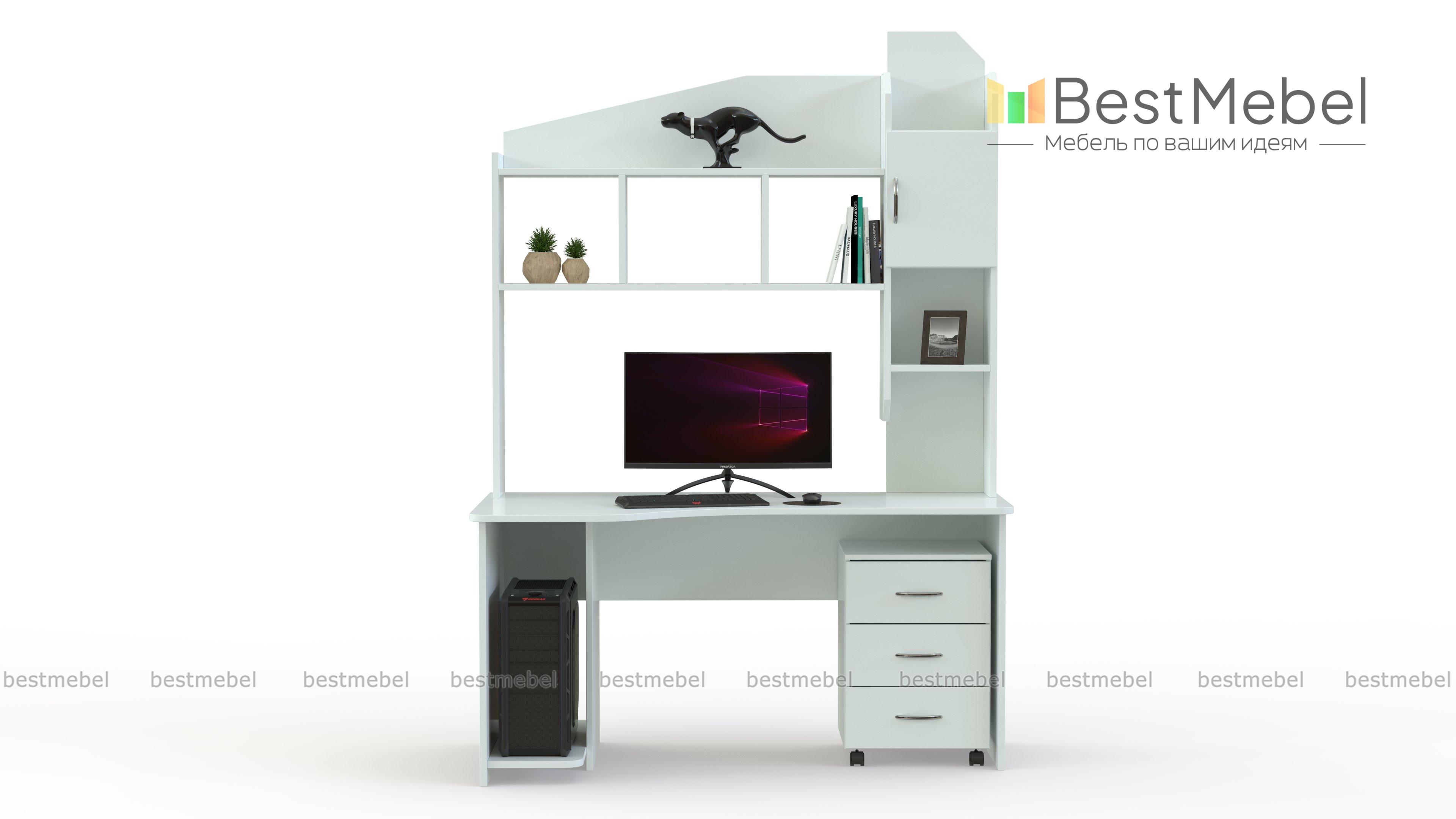 Компьютерный стол Студия СК BMS обеспечит экономию полезной площади и поможет разместить в зоне быстрого доступа все необходимое для работы или учебы. Модель оборудована безопасно скругленной, эргономичной столешницей, нишей под системный блок и надстройкой, которая позволит установить монитор и систематизировать хранение книг, папок и канцелярских принадлежностей. Дополняет композицию мобильная тумба с выдвижными ящиками. Купить компьютерный стол Студия СК BMS вы сможете в нашем интернет-магазине.