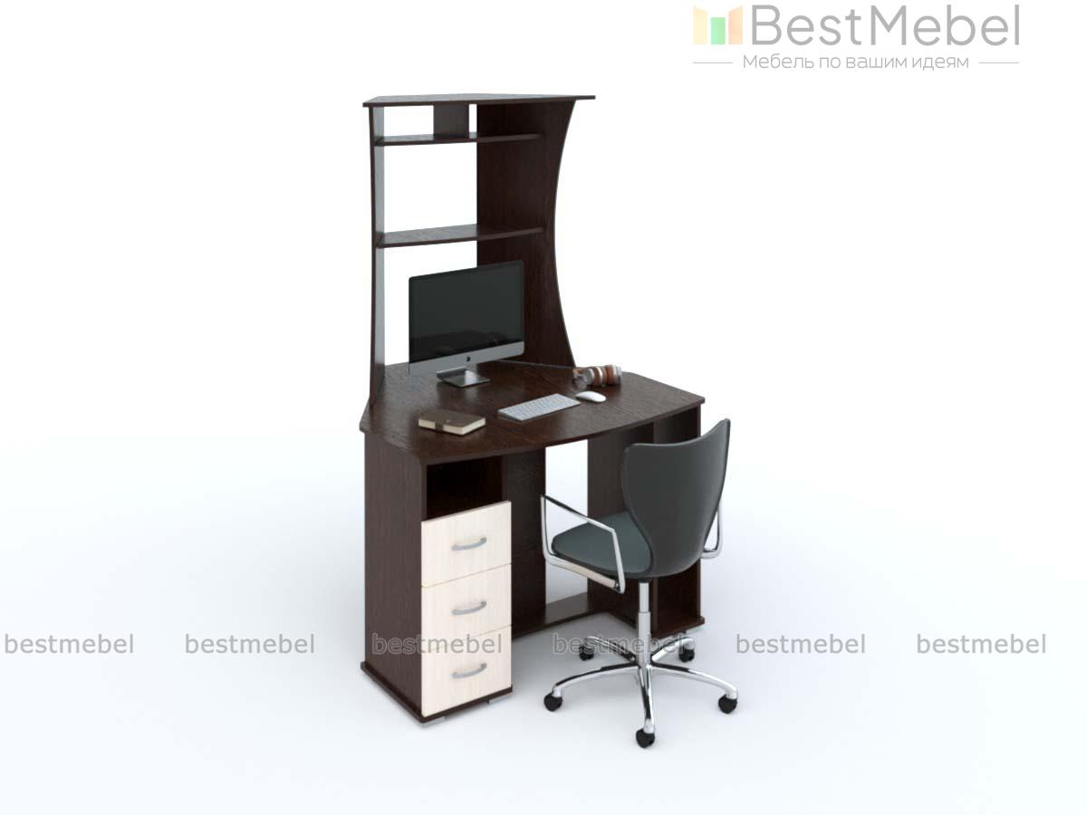 Стол компьютерный КС 20-26 BMS хорошо смотрится на небольшом метраже благодаря компактным размерам. На столешнице в форме трапеции располагается высокая, фигурно вырезанная надстройка с полками для оргтехники и периферийных устройств. Открытая секция и оборудованная выдвижными ящиками и нишей тумба разместят системный блок и канцелярские принадлежности. Купить стол компьютерный КС 20-26 BMS с выбором цвета и размеров вы сможете в нашем интернет-магазине.