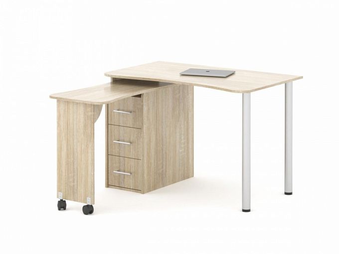 Стол компьютерный Рокки 10 BMS станет практичным выбором для небольших помещений благодаря функции трансформации. Компактная модель с эргономичной формы столешницей и скругленными углами оборудована тремя выдвижными ящиками для хранения канцелярских принадлежностей. Благодаря поворотному механизму и выкатной части с колесиками вы сможете легко увеличить рабочую поверхность и превратить прямой стол в угловой. Купить стол компьютерный Рокки 10 BMS приглашаем в наш интернет-магазин с выбором цвета по каталогу.