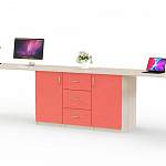 Письменный стол для двоих Роки 20 BMS – практичная идея для меблировки детской, позволяющая сэкономить полезную площадь. Широкая столешница, безопасно скругленная по углам, располагается вдоль окна и опирается на регулируемые хромированные ножки. По центру располагается вместительная тумба с распашными отделениями и тремя выдвижными ящиками с яркими светлыми фасадами. Купить письменный стол для двоих Роки 20 BMS и создать комфортный интерьер вам поможет наш интернет-магазин.