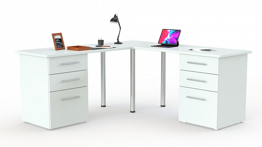 Письменный угловой стол для двоих Стандарт 1 BMS поможет задействовать обычно неиспользуемое угловое пространство и обустроить комфортные рабочие места. Модель, выполненная в универсальном белом цвете, отличается лаконичным современным дизайном и функциональностью. Просторная столешница опирается на регулируемые хромированные ножки и две тумбы с выдвижными ящиками для канцелярских мелочей. Купить письменный угловой стол для двоих Стандарт 1 BMS приглашаем в наш интернет-магазин по доступной цене.