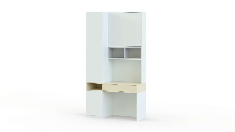 Письменный стол Плато 3 BMS поможет максимально эффективно использовать доступное пространство и оборудовать комфортное рабочее место. Комбинированная модель объединила удобный для работы за ноутбуком столик с выдвижным ящиком для мелочей, высокий узкий пенал с нишей и надстройку с открытыми книжными полками и распашным отделением. Светлые ванильные оттенки сочетаются с нейтрально-белым и серыми акцентами. Купить письменный стол Плато 3 BMS для современного интерьера приглашаем в наш интернет-магазин.