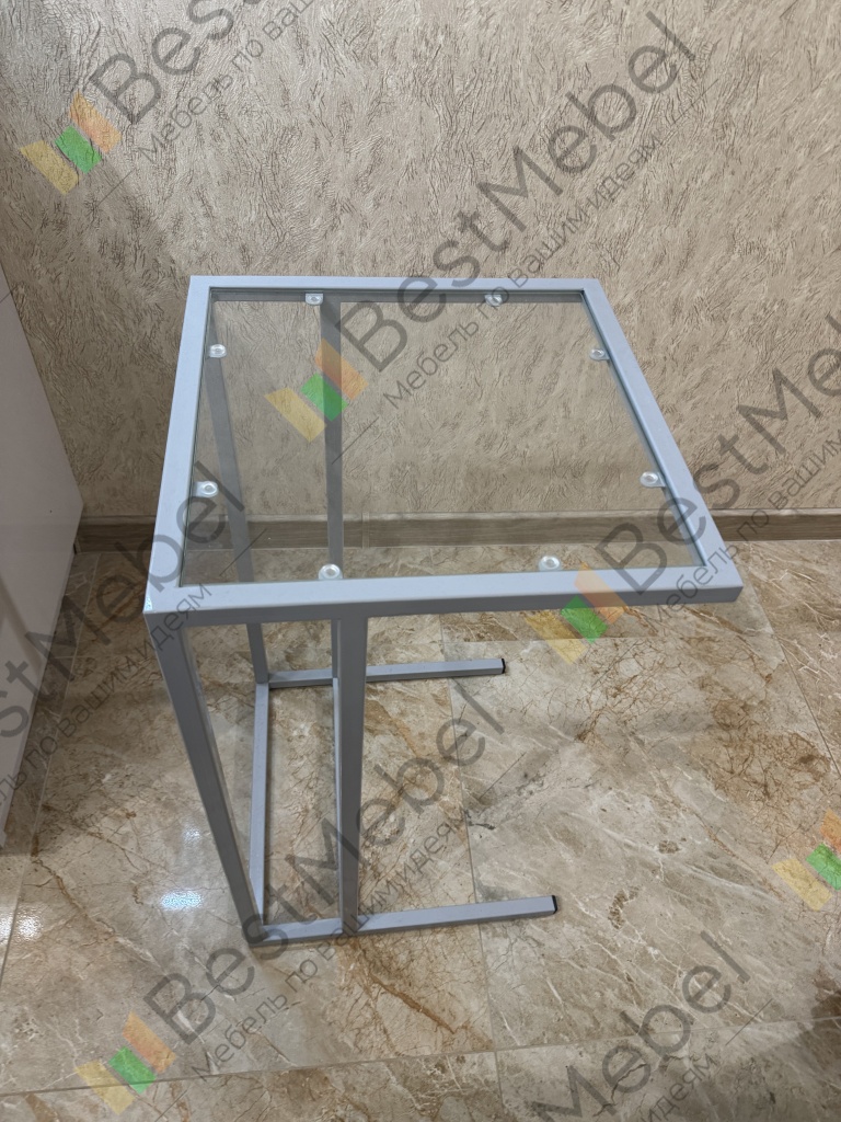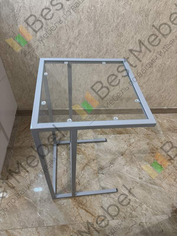 Столик отличный. Заказывали под электрический гриль размером 40*70*40. Выполнен качественно и с бонусами вышло достаточно дешево. Стекло каленое, не должно разбиться в случае чего. Под столик поставили мусорное ведро для экономии места. Заказ номер 00000263486