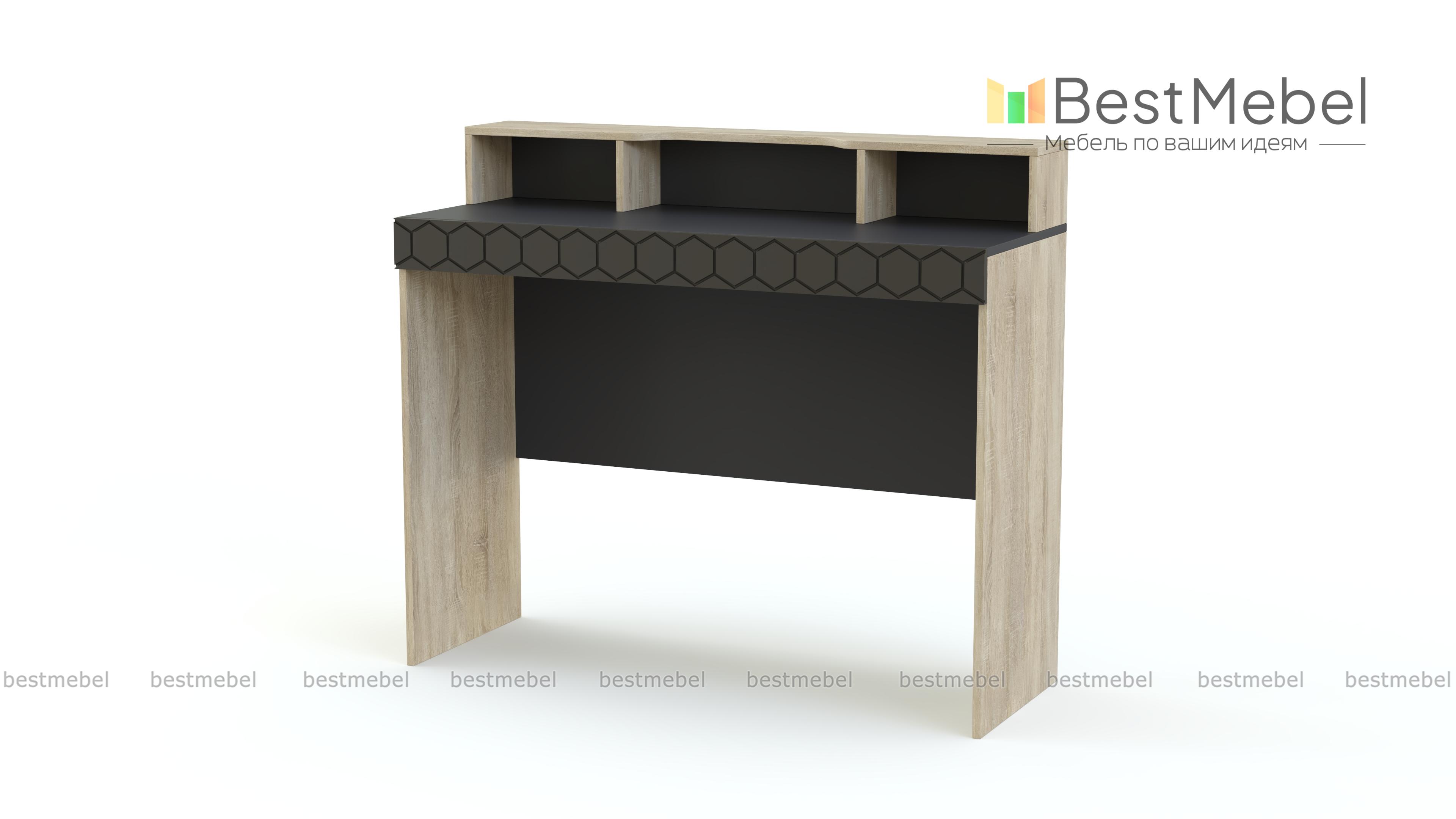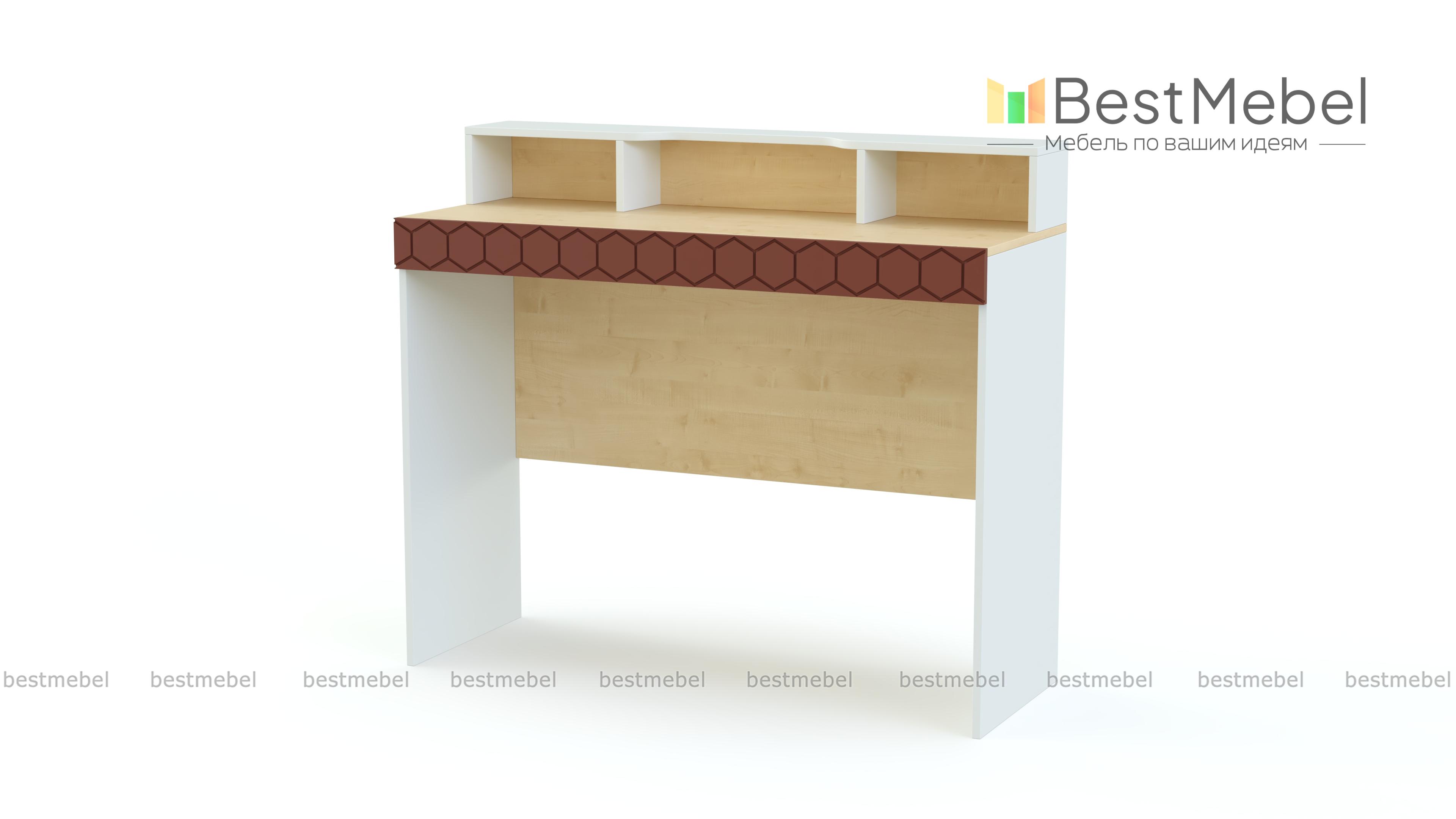 Туалетный стол Монте 5 BMS выполнен в древесных тонах теплой светлой гаммы и декорирован по фасаду накладкой с оригинальным фрезерованным орнаментом. Для удобного хранения мелочей элегантный столик оборудован широкой двухуровневой столешницей с полочкой, к которой крепится зеркало, и вместительными нишами. Износостойкость поверхностей и простота ухода помогут надолго сохранить модели эстетичный вид. Купить туалетный стол Монте 5 BMS и сделать спальный интерьер функциональнее вам поможет наш интернет-магазин.