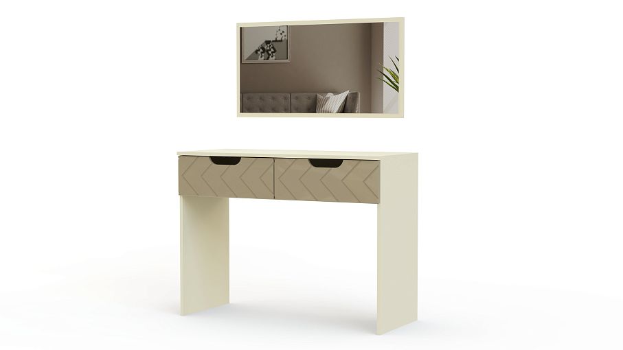 Туалетный столик Грация 1 BMS будет играть в интерьере современной спальни роль стильного акцента. Эффектный вид лаконичному прямоугольному столику придает сочетание ванильных тонов и яркого глянца с фрезерованным рисунком. Два выдвижных ящика с ручками-вырезами помогут разместить все необходимые уходовые средства и аксессуары, а большое навесное зеркало крепится на удобной для вас высоте. Купить туалетный столик Грация 1 BMS приглашаем в наш интернет-магазин с выбором цвета по каталогу.