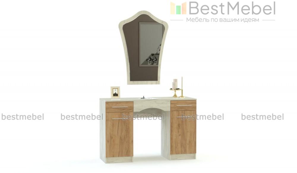 Туалетный столик СП-488 BMS сочетает классический дизайн с трендовым цветовым решением в терракотовых и древесных тонах. Двухтумбовый стол с просторной столешницей может использоваться как рабочий или макияжный и легко разместит в быстром доступе необходимые уходовые средства и аксессуары. Дополняет композицию большое навесное зеркало с изящно вырезанным верхом. Купить туалетный столик СП-488 BMS и сделать спальный интерьер функциональным вам поможет наш интернет-магазин.