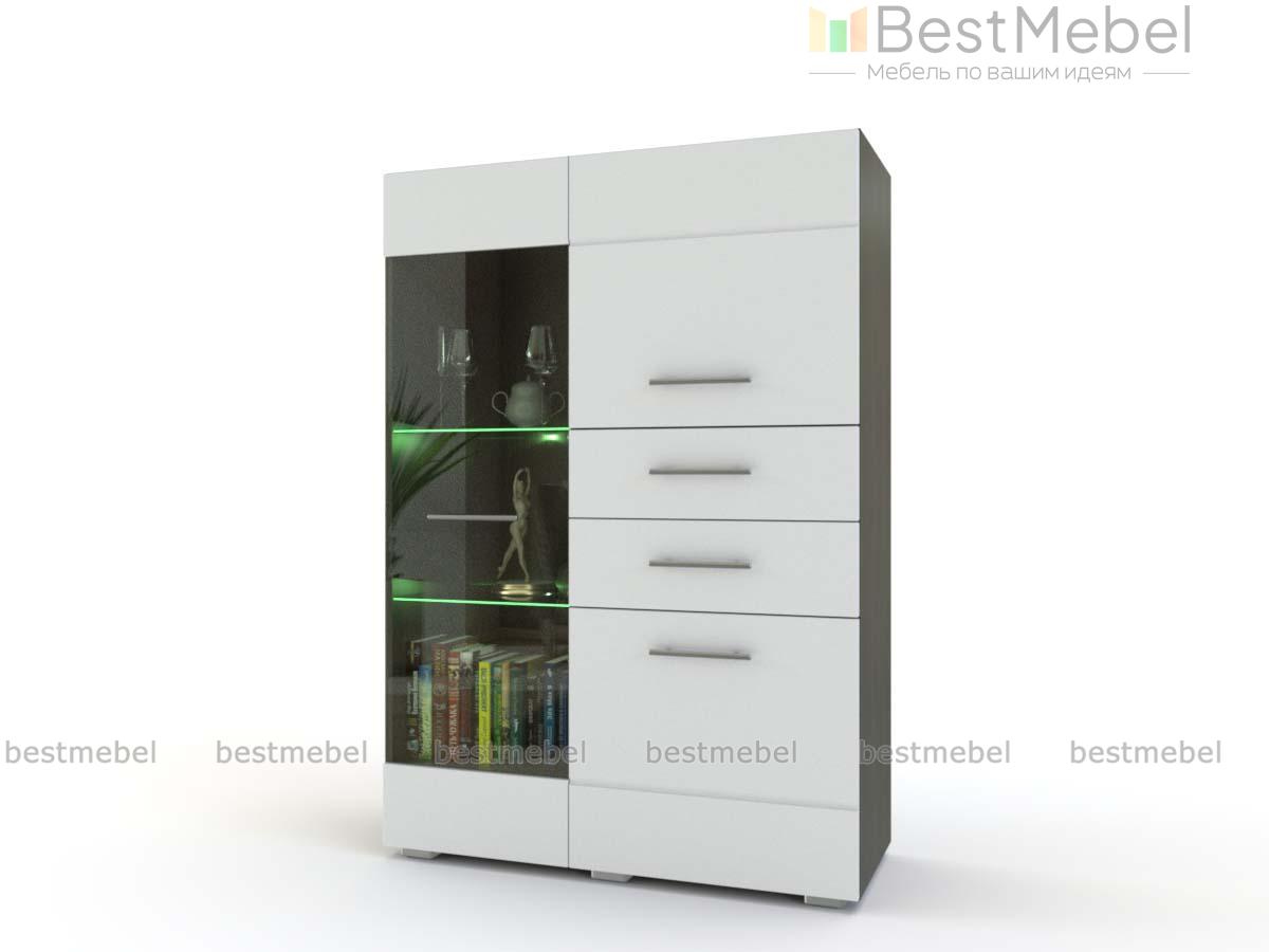 Тумба Нимфа 2 BMS эффектно дополнит ультрасовременные интерьеры в стиле минимализм или хай-тек. Компактная модель в белоснежном глянце подходит для меблировки как просторных гостиных, так и студий, визуально расширяя пространство. Для хранения разнообразных бытовых мелочей предусмотрены два закрытых распашных отделения и два выдвижных ящика, а разместить посуду и предметы декора поможет витрина с полками и подсветкой, выделенная контрастным цветом. Купить тумбу Нимфа 2 BMS приглашаем в наш интернет-магазин.