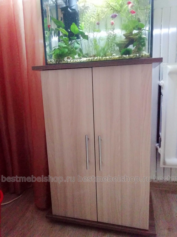 Заказывали Тумбу под аквариум Классик 50 в данном магазине. Доставили очень быстро, даже раньше оговоренного срока. Собирали мы ее сами. Тумба отличная, хорошо вписалась в интерьер комнаты, выглядит аккуратно, и цена очень порадовала. Используем уже более 3-х месяцев - ничего не отвалилось, не размокла, хотя вода на нее попадает постоянно при смене воды в Аквариуме. Внутри есть две полки, на которых поместились все аквариумные принадлежности. Покупкой очень довольны, рекомендую к покупке.