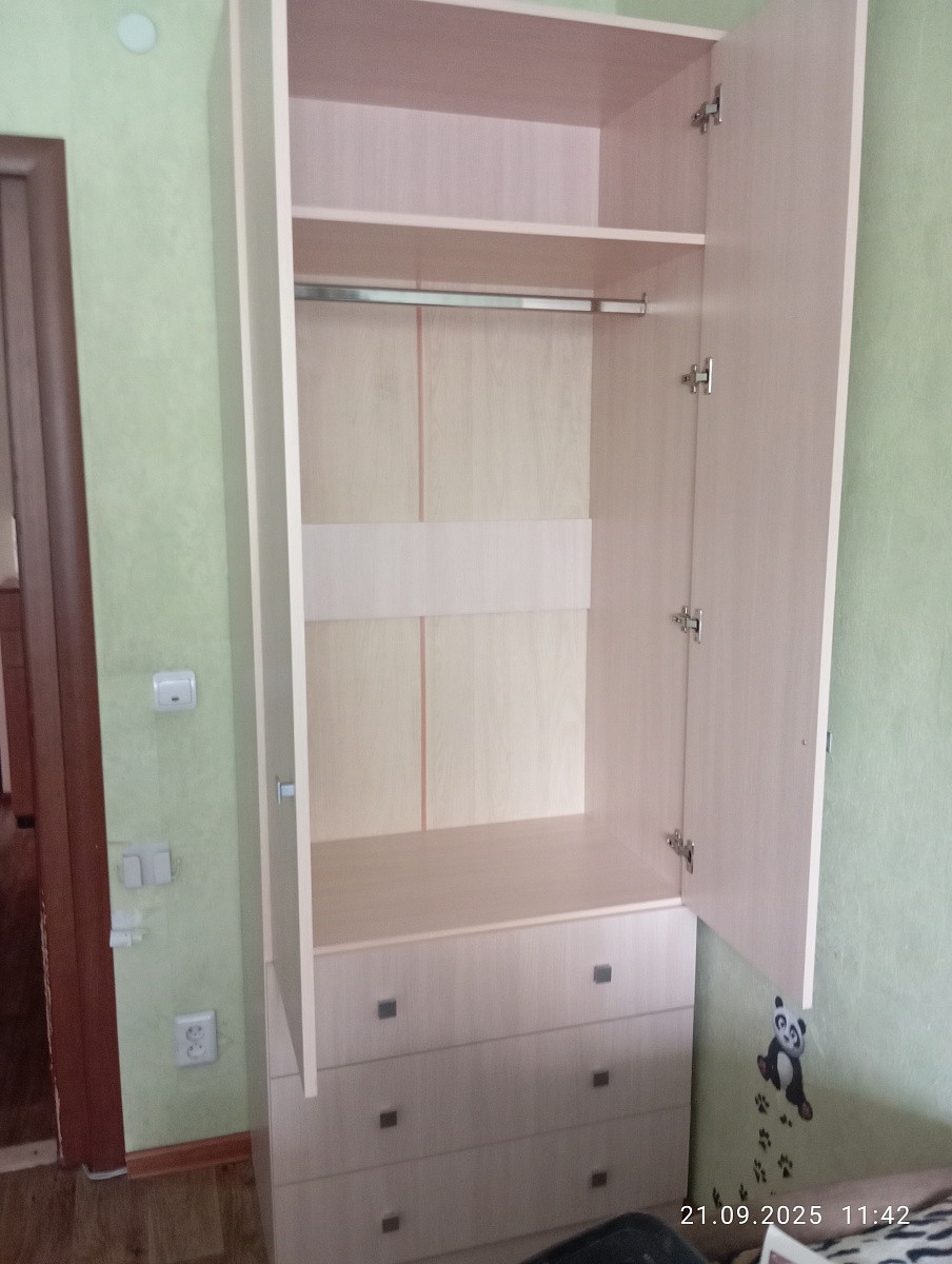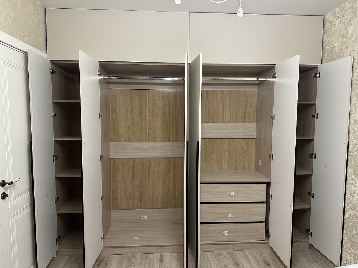 Отличный шкаф! Очень функциональный. Заказывали 80х220. Изготовление и доставка вовремя, сборщик вообще молодец! Приезал на следующий день после доставки, проверил комплект и на брак. Быстро, тихо, аккуратно все собрал. Убрал мусор. Из минусов только доставка, проверяйте доставщиков, у нас неожиданно увеличился километраж от МКАД и цена за подъем, после звонка в компанию все решили. Сам шкаф просто красавчик, лучше чем представляли.